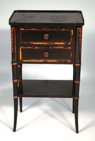 Two drawer regency style stand which matches previous lot. 29 1/2" h x 17" w x 12 3/4" d Two drawer regency style stand which matches previous lot. 29 1/2" h x 17" w x 12 3/4" d