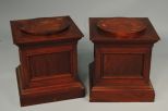 Early 20th century mahogany pedestals. Each side with panels,round 14 1/2" top 19 3/4"sq. Early 20th century mahogany pedestals. Each side with panels,round 14 1/2" top 19 3/4"sq.