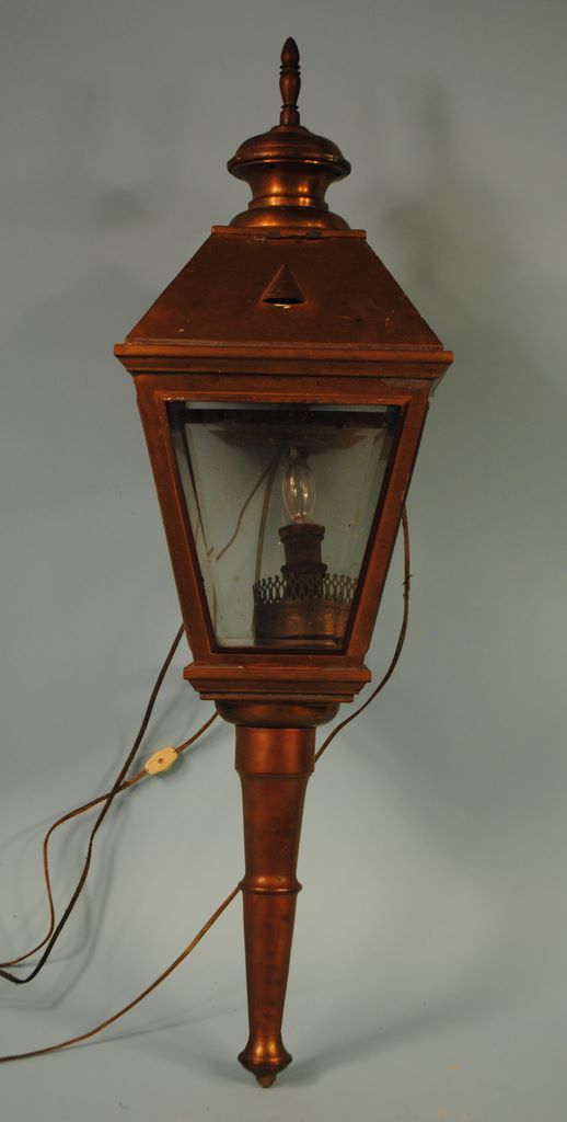 Large brass carriage lantern with four beveled glass panels.. Has been wired h38",w11" Large brass carriage lantern with four beveled glass panels.. Has been wired h38",w11"