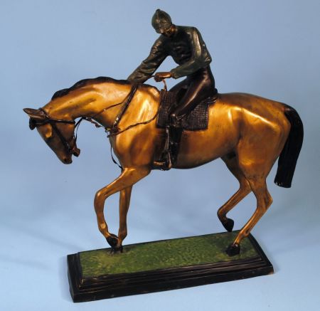 340 Tri-Color Bronze Figure of Jockey Riding Horse