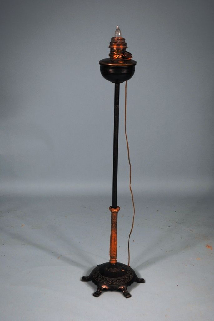 Vintage iron floor lamp with amber shade 54"h Vintage iron floor lamp with amber shade 54"h