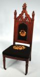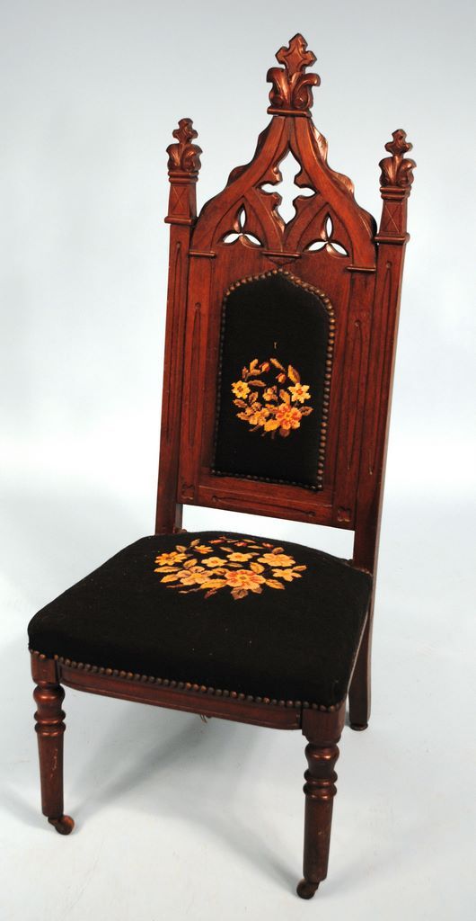 Mid Victorian walnut gothic hall chair with needlepoint..46"h Mid Victorian walnut gothic hall chair with needlepoint..46"h