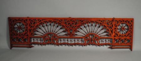 Elaborate walnut carved Victorian fretwork or transom. Three sections carved spools in fan design and other fancy Victorian designs. 6'w, 16 1/2"h. Elaborate walnut carved Victorian fretwork or transom. Three sections carved spools in fan design and other fancy Victorian designs. 6'w, 16 1/2"h.