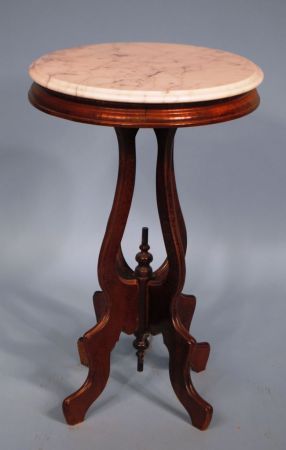Victorian style walnut marble top table 18" dia,29"h Victorian style walnut marble top table 18" dia,29"h