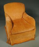 modern club chair broad back and seat, sweeping arms, skirted to the floor, covered in cream velvet. 30 1/2"w, 33 1/2" h modern club chair broad back and seat, sweeping arms, skirted to the floor, covered in cream velvet. 30 1/2"w, 33 1/2" h