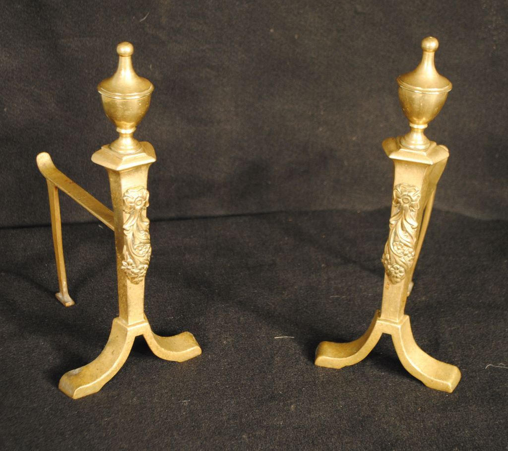 497 Pair of Late 1800s-Early 1900s English Brass Dog Irons
