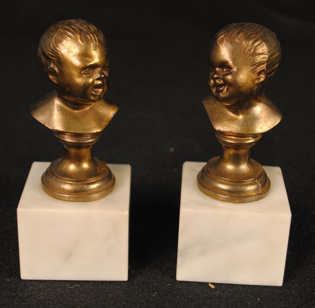 Pair of brass and marble children's head book ends, 5" h Pair of brass and marble children's head book ends, 5" h