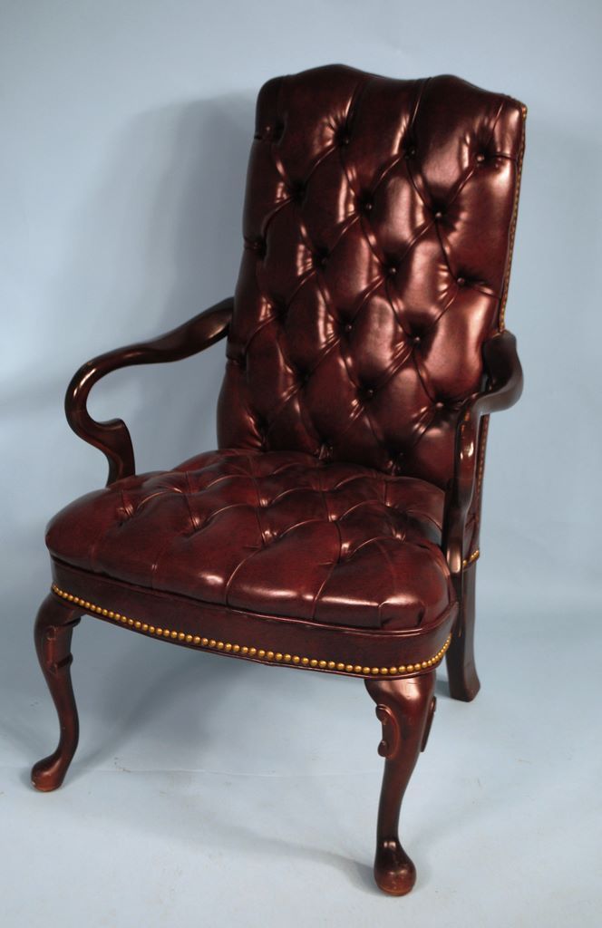 Eight high back conference room arm chairs, burgundy, tufted. Eight high back conference room arm chairs, burgundy, tufted.