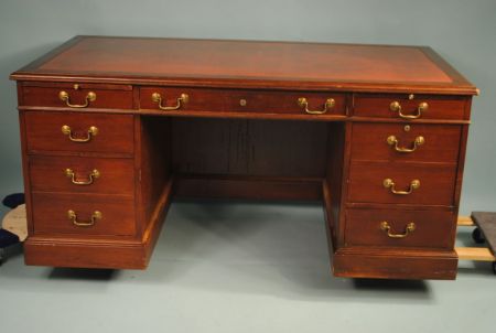 Antique Chippendale desk-leather top desk with emergency button-pull outs, front and back. Antique Chippendale desk-leather top desk with emergency button-pull outs, front and back.