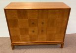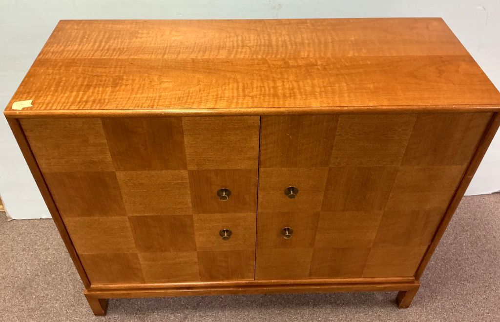 Baker Furniture Co. Art Deco Style Walnut Snack Bar 37"h., 43"w., 17"d, two door, inner shelves, good condition, Location Row 3 Baker Furniture Co. Art Deco Style Walnut Snack Bar 37"h., 43"w., 17"d, two door, inner shelves, good condition, Location Row 3