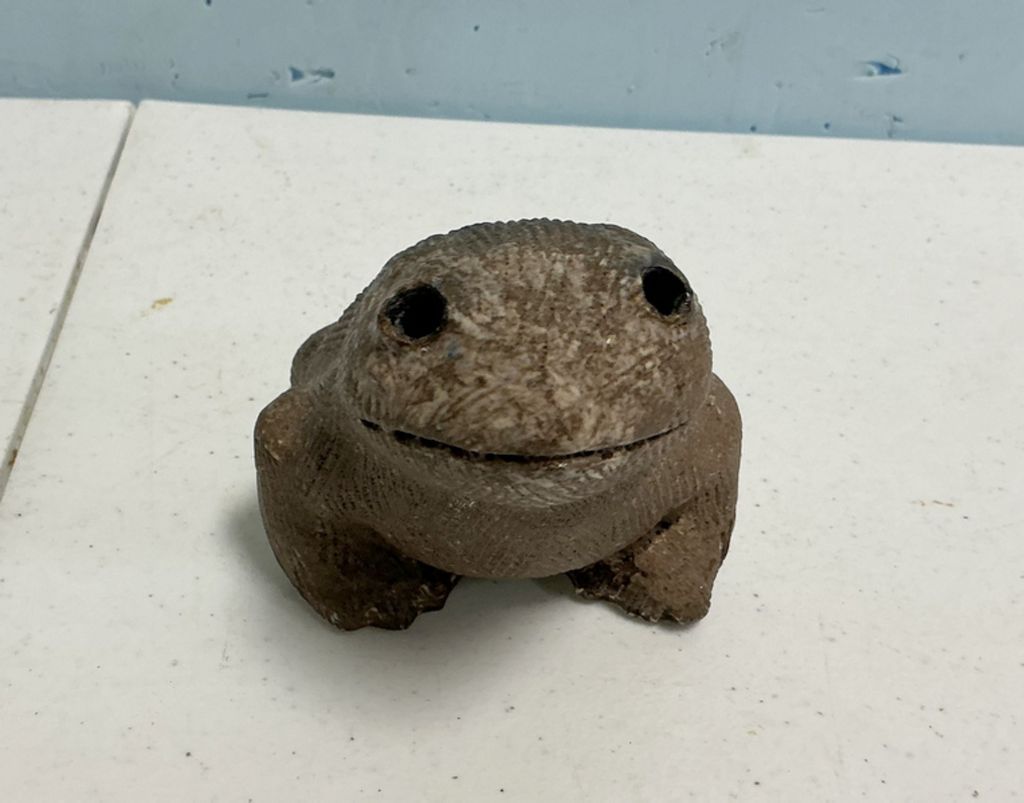 205 McCarty Nutmeg Pottery Frog 4"h., 5"w