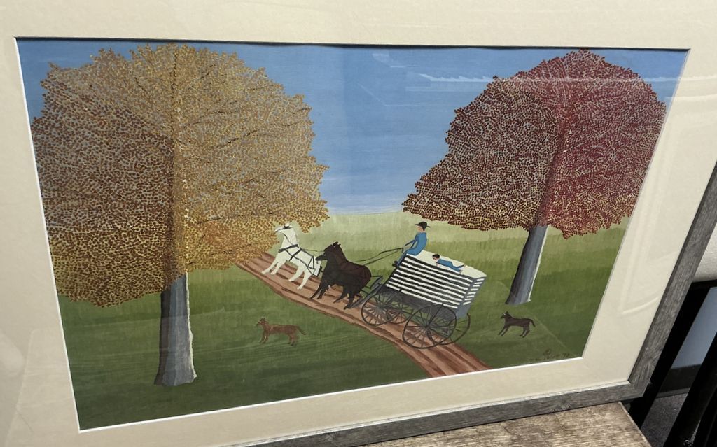Theora Hamblett VTG Limited Edition Print Carrying Cotton to the Gin, printed in 1976 on premium paper, framed, matted, print size 30" x 22" Location Room 3 Theora Hamblett VTG Limited Edition Print Carrying Cotton to the Gin, printed in 1976 on premium paper, framed, matted, print size 30" x 22" Location Room 3