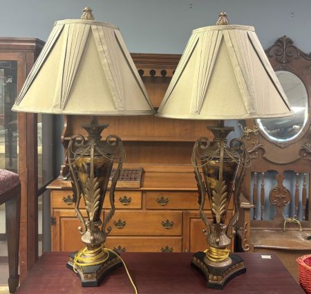 Pair of Decorative Metal Urn Lamps, Location Room 3 Pair of Decorative Metal Urn Lamps, Location Room 3