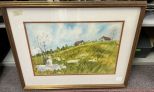 232 20h 26w Signed1980 Watercolor of Girl in Field Landscape