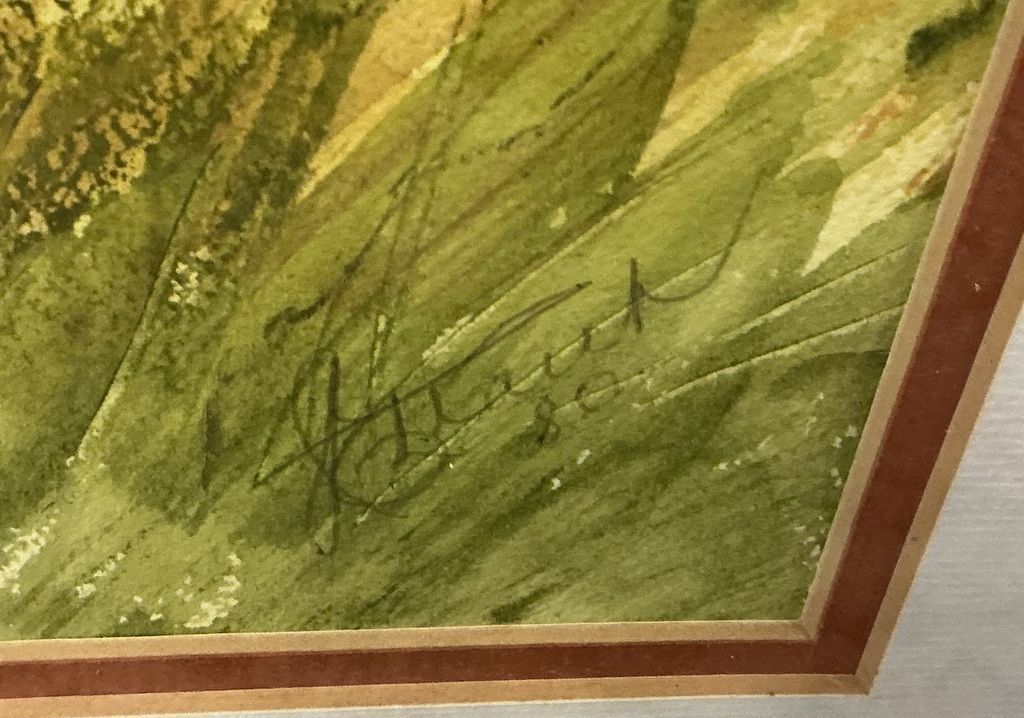 20h 26w Signed 1980 Watercolor of Girl in Field Landscape, matted, Local estate, framed, Location Room 3 20h 26w Signed 1980 Watercolor of Girl in Field Landscape, matted, Local estate, framed, Location Room 3