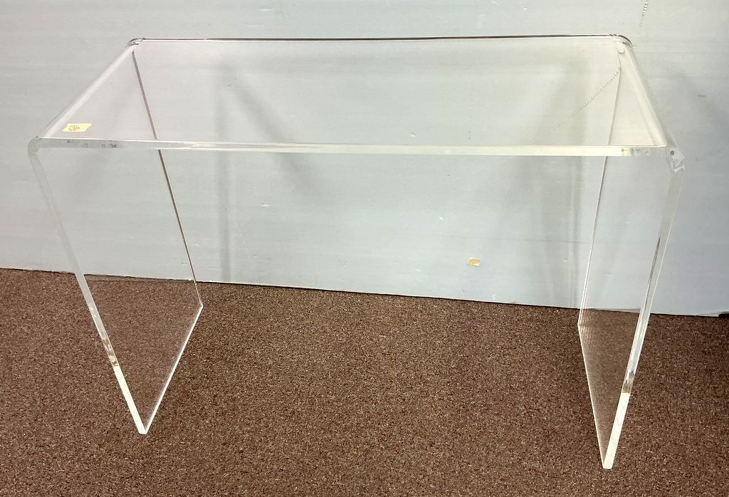 28"h., 37"w Lucite Waterfall Console Table, Location Room 3 28"h., 37"w Lucite Waterfall Console Table, Location Room 3
