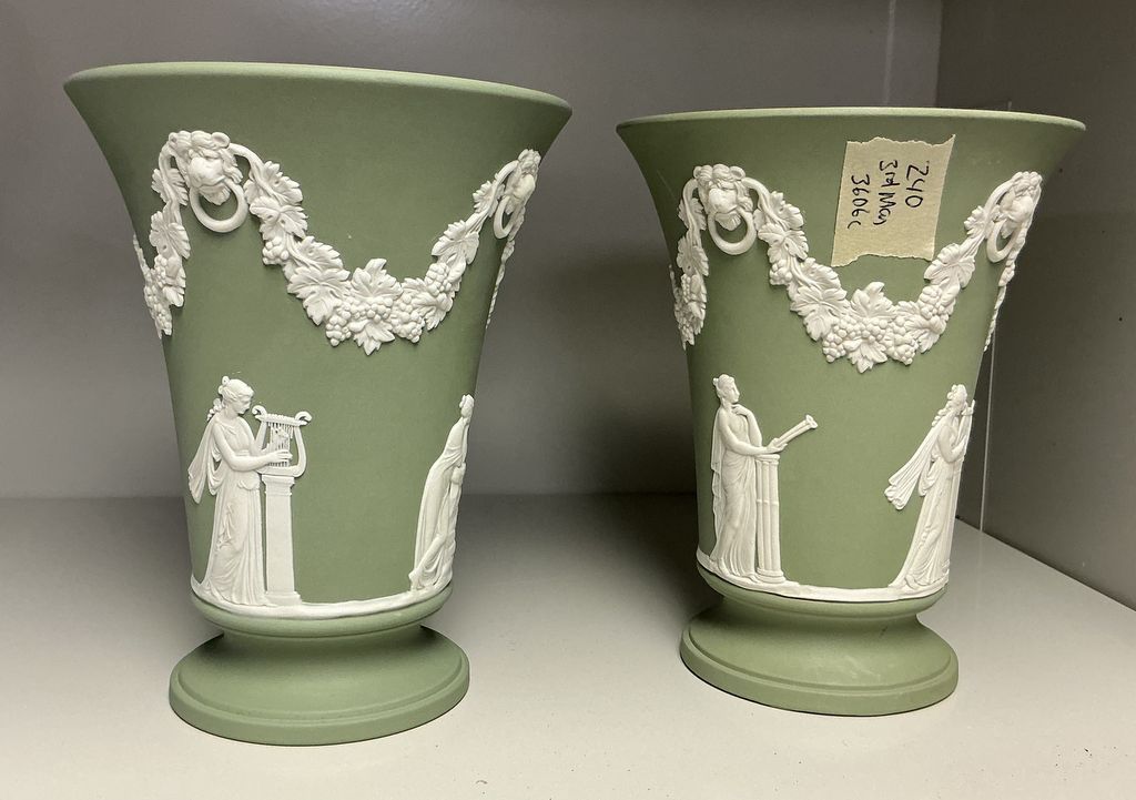Bacchus Vase Celadon Jasperware 6"h, by Wedgwood, Location Room 3 Shelve 2 Bacchus Vase Celadon Jasperware 6"h, by Wedgwood, Location Room 3 Shelve 2