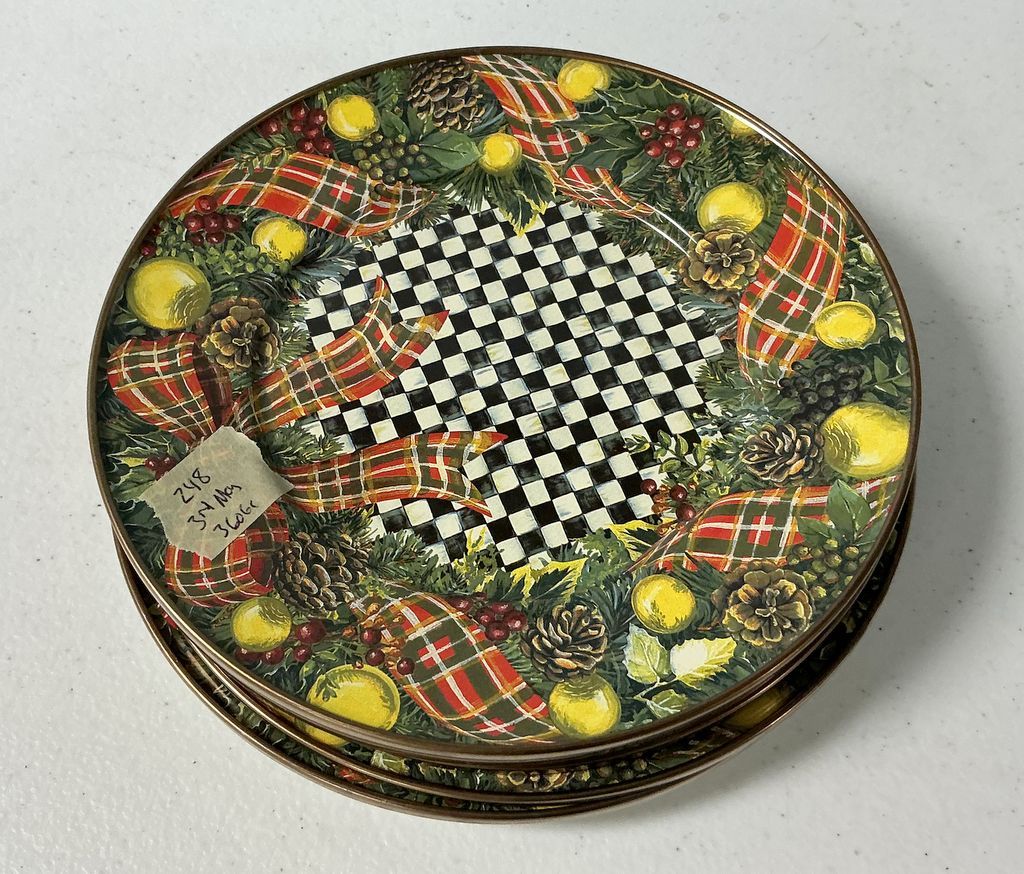 Eight Mackenize Childs Evergreen Salad Plates 8"dia, Location Room 3 Shelve 2 Eight Mackenize Childs Evergreen Salad Plates 8"dia, Location Room 3 Shelve 2