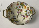 253 Mackenzie Childs Floral Colander Strainer 4"h., 6"dia
