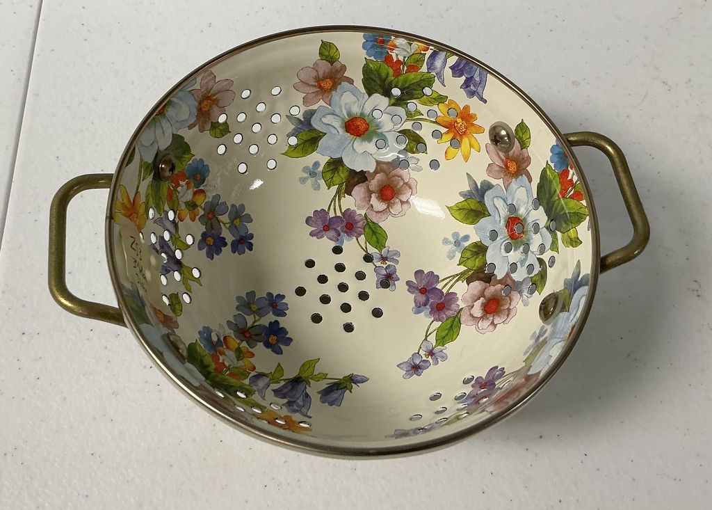 Mackenzie Childs Floral Colander Strainer 4"h., 6"dia Location Room 3 Shelve 2 Mackenzie Childs Floral Colander Strainer 4"h., 6"dia Location Room 3 Shelve 2