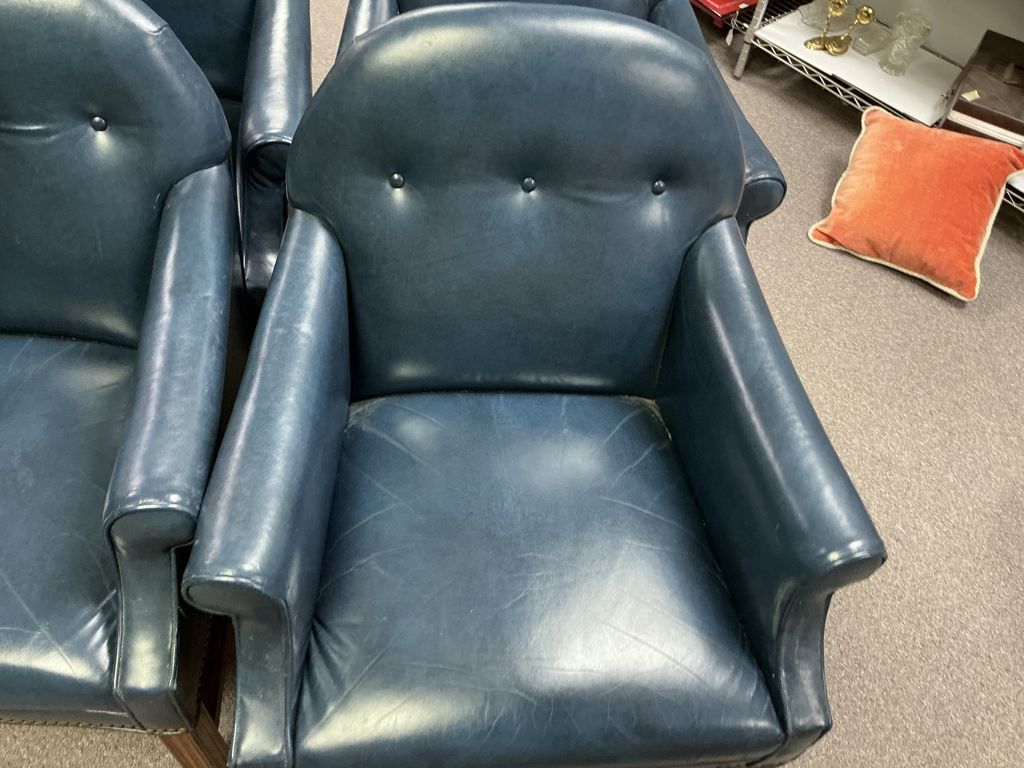Four Blue Vinyl Leather Game Chairs, on casters. Location Room 3 Four Blue Vinyl Leather Game Chairs, on casters. Location Room 3