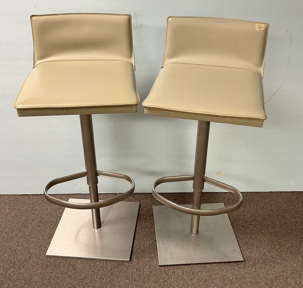 Pair Of Italian Imported Frag Bottega Piston Stool In Buff Leather 31", Location Room 3 Pair Of Italian Imported Frag Bottega Piston Stool In Buff Leather 31", Location Room 3