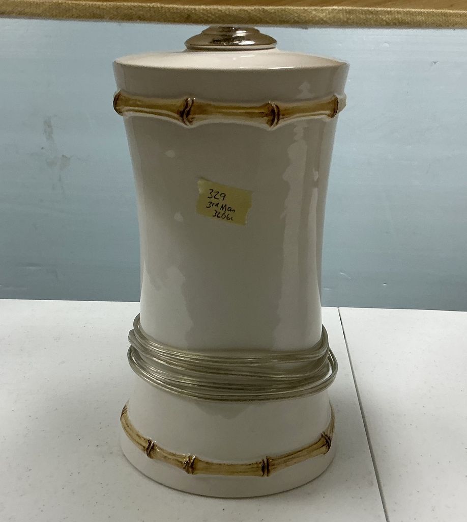 Juliska Pair of Ceramic Cylinder Lamps 23"h, Location Room 3 Juliska Pair of Ceramic Cylinder Lamps 23"h, Location Room 3