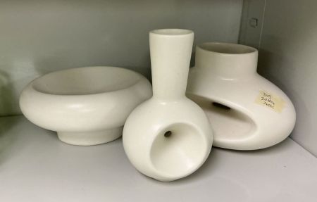 Eva Zeisel Handmade Porcelain Vases for Klein Reid Pottery Minimalist Modern 7"h., Location Room 3 Shelve 6 Eva Zeisel Handmade Porcelain Vases for Klein Reid Pottery Minimalist Modern 7"h., Location Room 3 Shelve 6