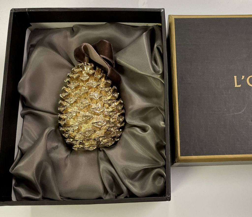 L Objet 24k Gold Plated Pinecone 3", with box, Location Room 3 Shelves 8 L Objet 24k Gold Plated Pinecone 3", with box, Location Room 3 Shelves 8