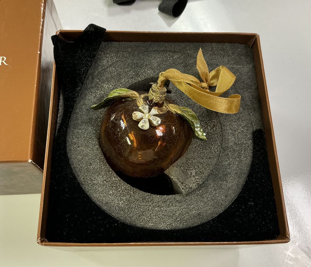 Jay Strongwater Apple Ornament, with box, Location Room 3 Shelves 8 Jay Strongwater Apple Ornament, with box, Location Room 3 Shelves 8