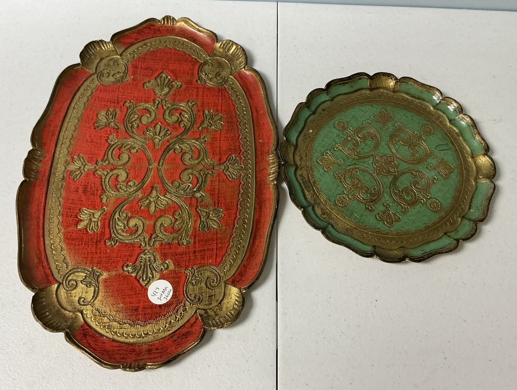 Red Florentine Trays, Location Room 3 Shelves 6 Red Florentine Trays, Location Room 3 Shelves 6