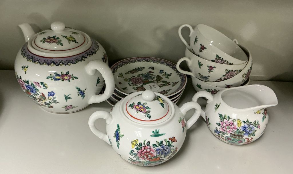 Bombay co. Hong Kong Painted Tea Set, Location Room 3 shelves Bombay co. Hong Kong Painted Tea Set, Location Room 3 shelves