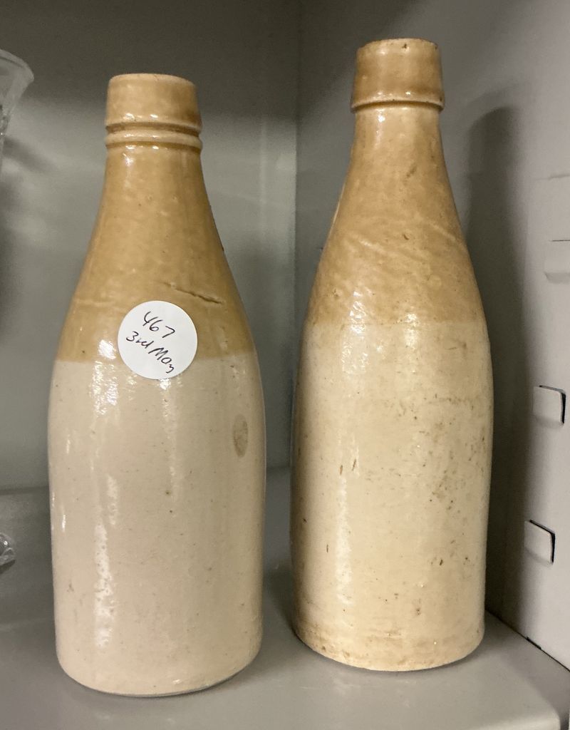 VTG Yellowware Stoneware Bottles, Location Room 3 Shelves VTG Yellowware Stoneware Bottles, Location Room 3 Shelves