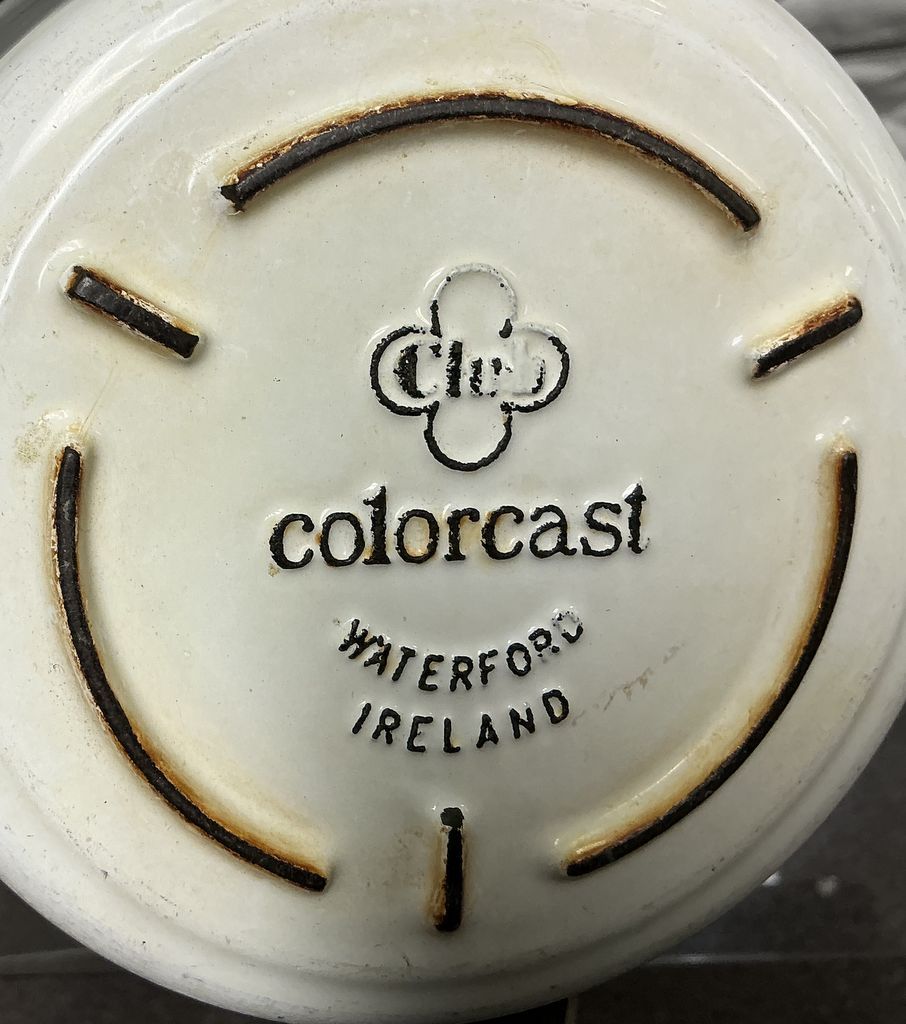 Colorcast Waterford Ireland Cooking Pan, white enameled, Location Room 3 Shelves Colorcast Waterford Ireland Cooking Pan, white enameled, Location Room 3 Shelves