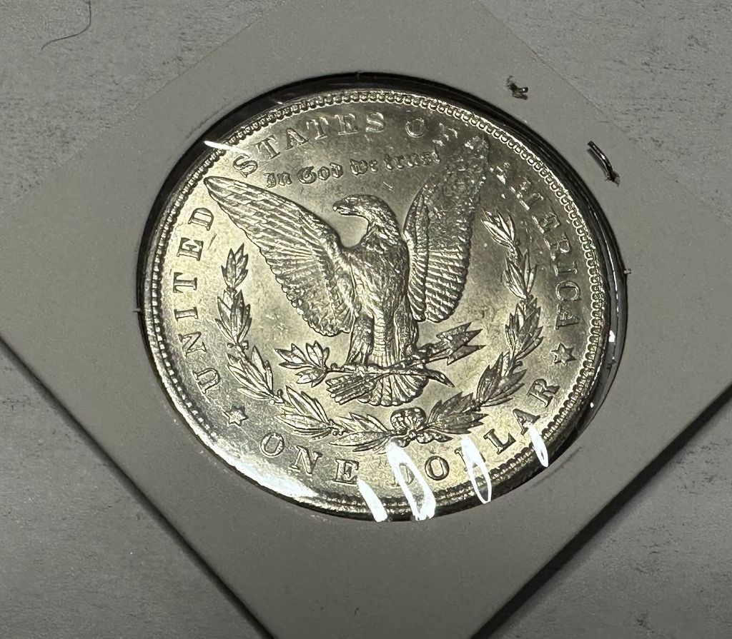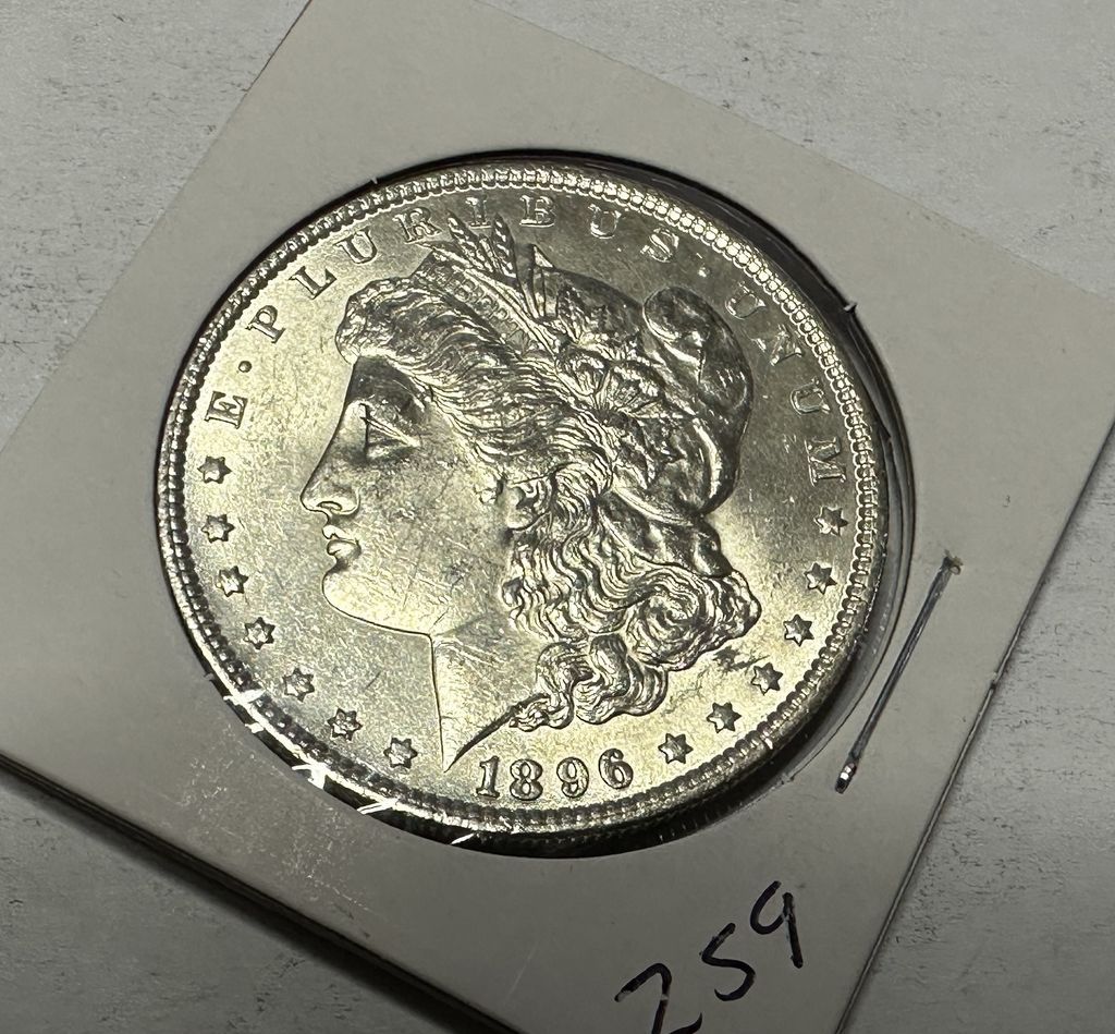 1896 Morgan Silver Dollar, fine, paper case, Location tall Cases 1896 Morgan Silver Dollar, fine, paper case, Location tall Cases