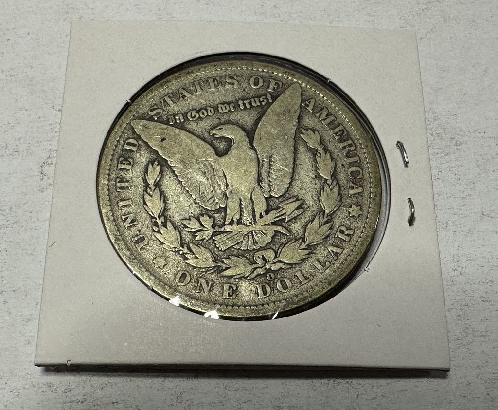 1890-O Morgan Silver Dollar, good, paper case Location tall cases 1890-O Morgan Silver Dollar, good, paper case Location tall cases
