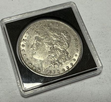 1880 Morgan Silver Dollar, fine, plastic case Location Tall Cases 1880 Morgan Silver Dollar, fine, plastic case Location Tall Cases