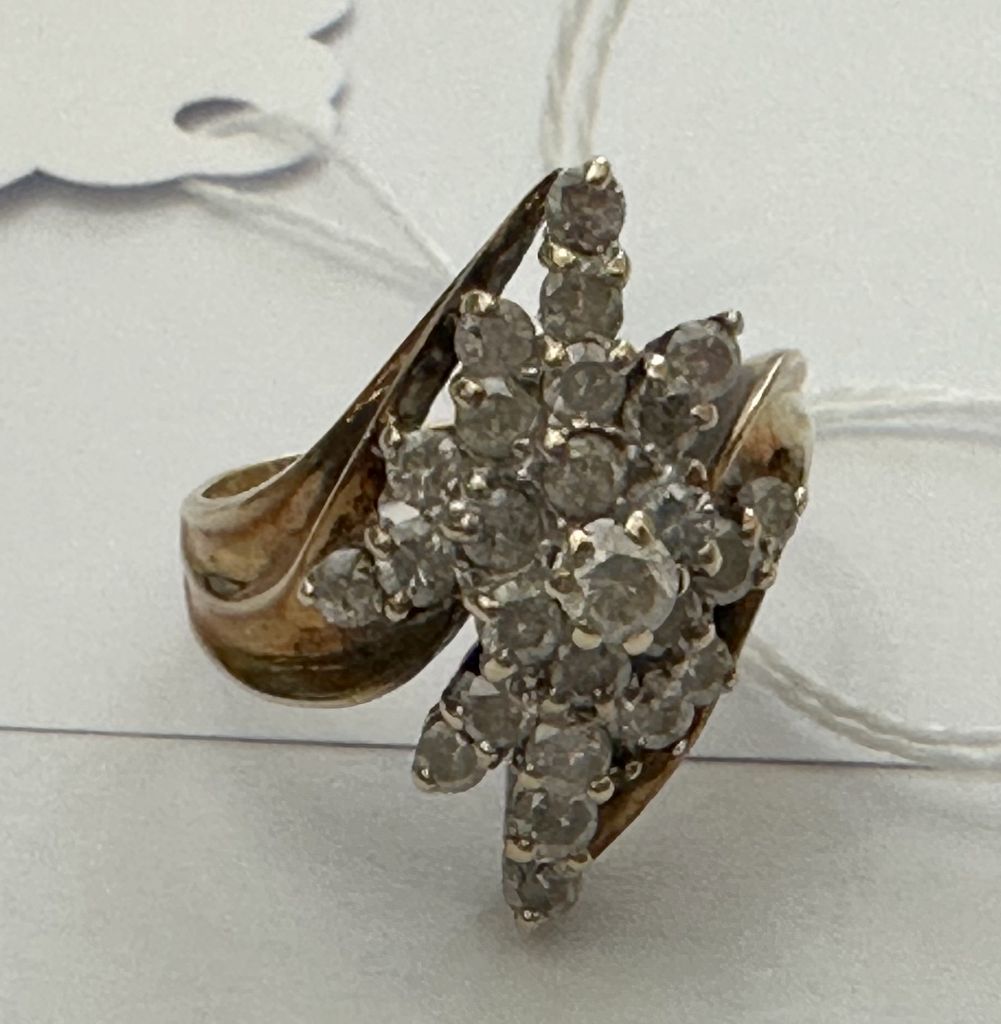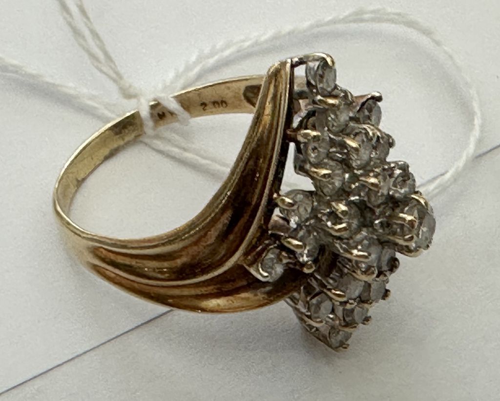 353 10K Gold Large Diamond Waterfall Ring Size 11