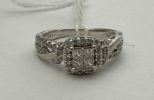 359 10k White Gold Princess Cut Cluster Diamond Ring Size: 5.75