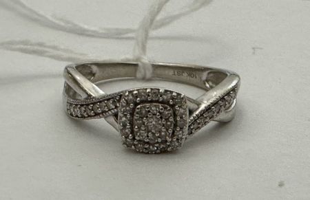 360 10k White Gold Cluster Diamond Promise Ring Size: