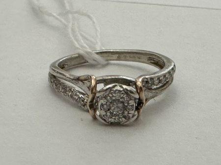 14K White Gold Illusion Set Diamond Ring; Rose gold accents at shoulder shank; 2.4g Size: 5. 14K White Gold Illusion Set Diamond Ring; Rose gold accents at shoulder shank; 2.4g Size: 5.