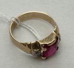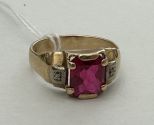 368 Men's Vintage 14k Gold Ruby Glass Stone Ring Size: 10.75
