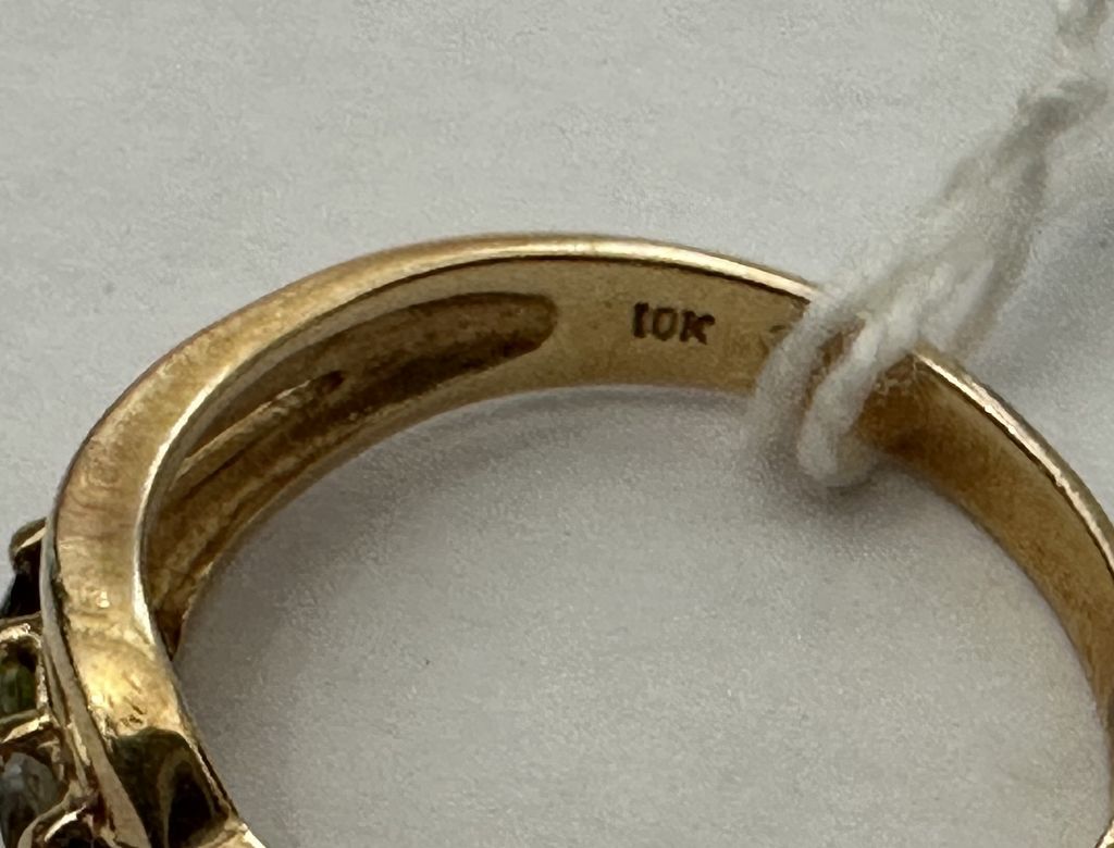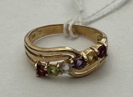 369 10k Gold Mixed Gemstone Waved Ring Band Size 8