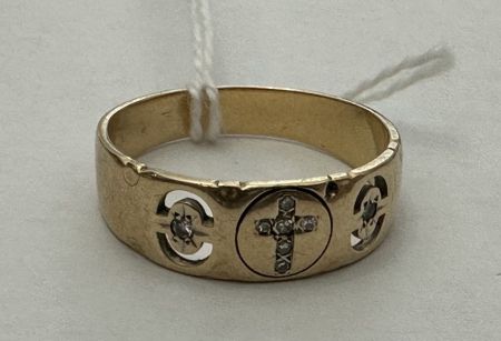 Men's Vintage 14k Gold Diamond Cross Ring; Size: 11; 5.3 grams; Can be resized; Carved band details. Unique style; Old. Men's Vintage 14k Gold Diamond Cross Ring; Size: 11; 5.3 grams; Can be resized; Carved band details. Unique style; Old.