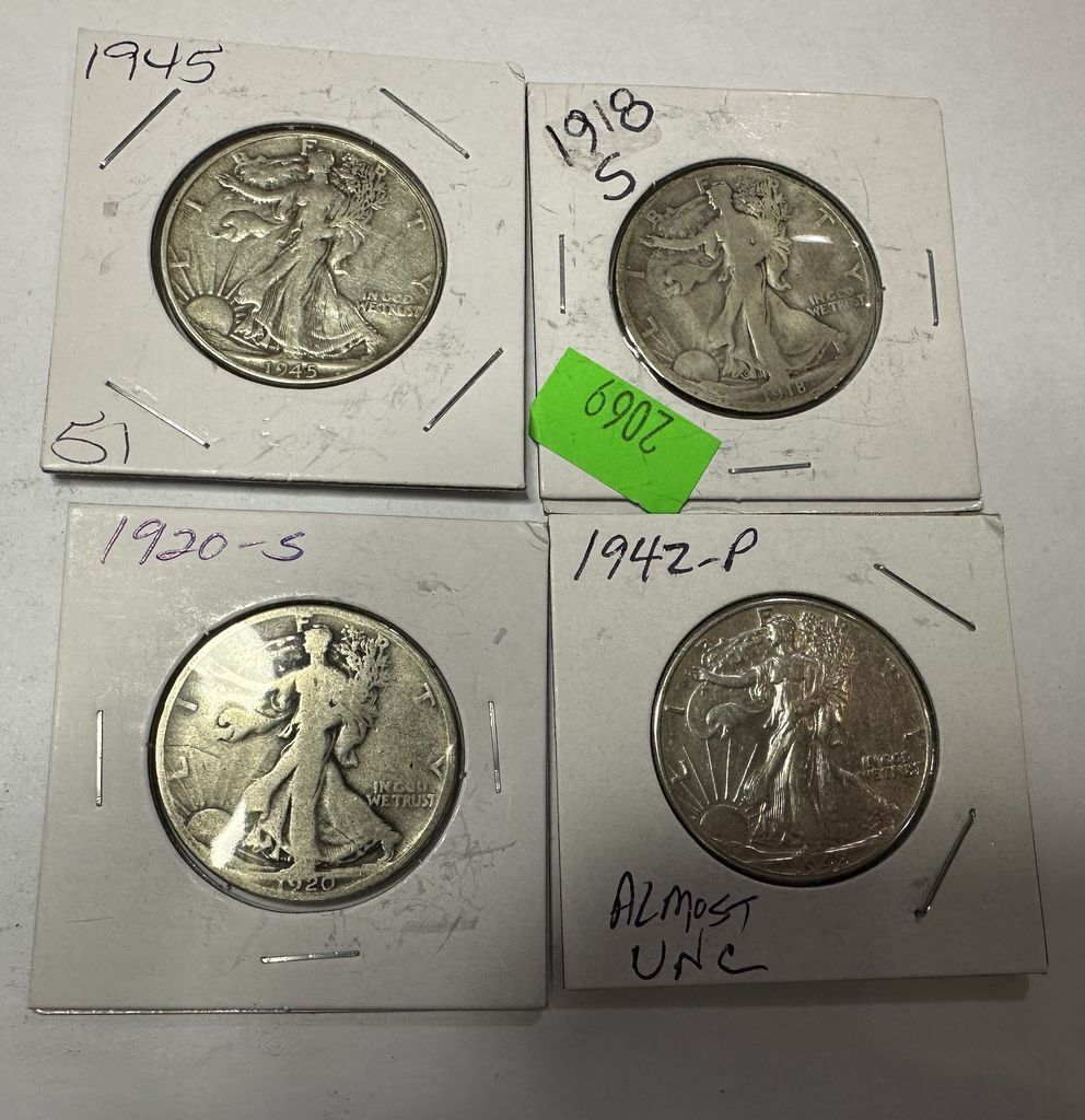 1945, 1918-S, 1920-S, and 1942-P Walking Liberty Half Dollar 1945, 1918-S, 1920-S, and 1942-P Walking Liberty Half Dollar