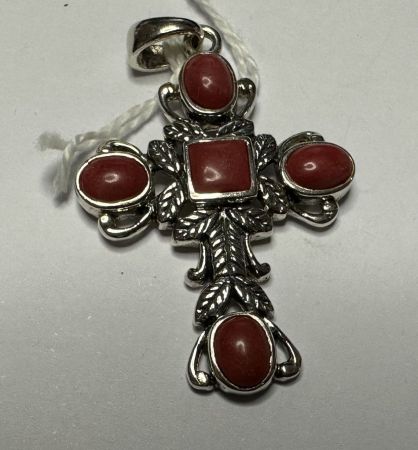 .925 Cross Pendant with Red Jasper Stones, 6.6 grams .925 Cross Pendant with Red Jasper Stones, 6.6 grams