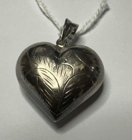 Vintage .925 Sterling Etched Puff Heart Pendant; c.1940s/50s, 6.2 grams Vintage .925 Sterling Etched Puff Heart Pendant; c.1940s/50s, 6.2 grams