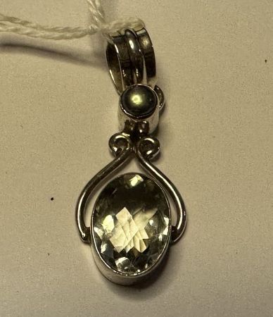 514 .925 Sterling Prasiolite Quartz + Pearl Pendant