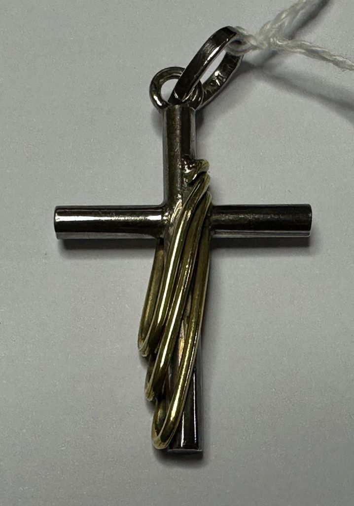 524 .925 Sterling Cross Pendant w Gold Wash Sash