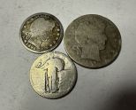 586 1892 Barber Quarter Dollar, 1899 Barber Half Dollar, No Date Standing Liberty Quarter